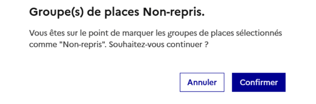 La non-reprise d’un groupe de places signifie qu’il ne sera pas intégré dans le module Offre.
