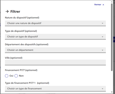 Cliquez sur Exporter à droite de l’écran (à côté de Créer un dispositif) pour exporter tous les dispositifs de votre département.