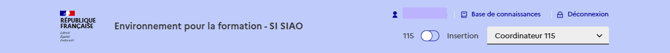 - Un bandeau bleu en haut de l’écran avec la mention « Environnement pour la formation SI SIAO »