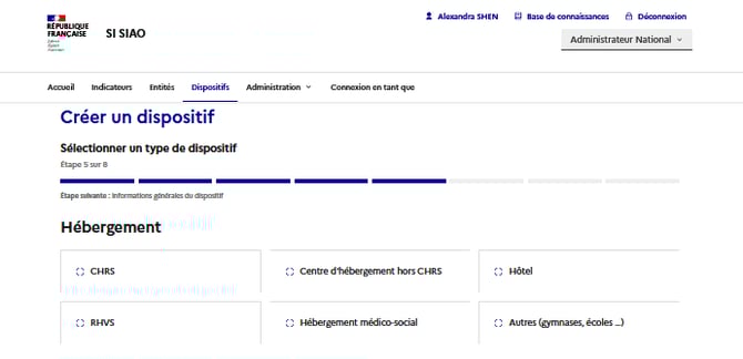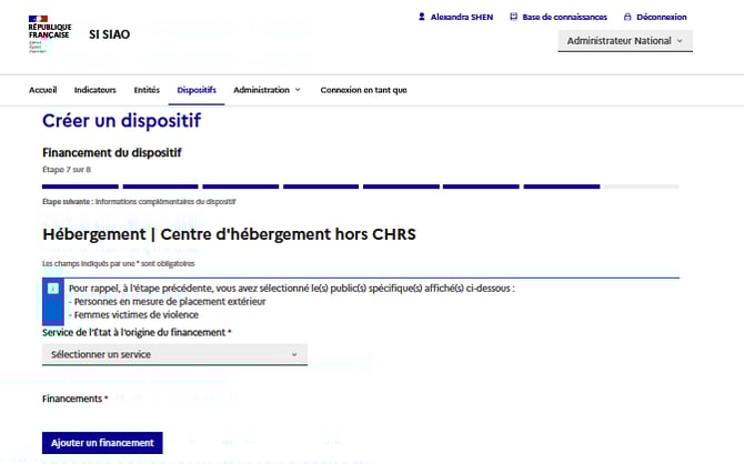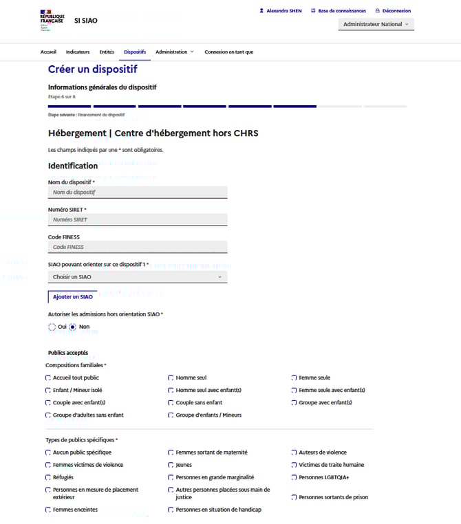 Seuls les Administrateurs départementaux peuvent valider la création, sauf pour certains dispositifs (Premier accueil, Veille sociale, Hôtel, RHVS et Hébergement autres) validables par un Administrateur SIAO.