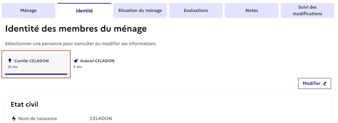 Onglet Ménage > Cartes individuelles de chaque personne |