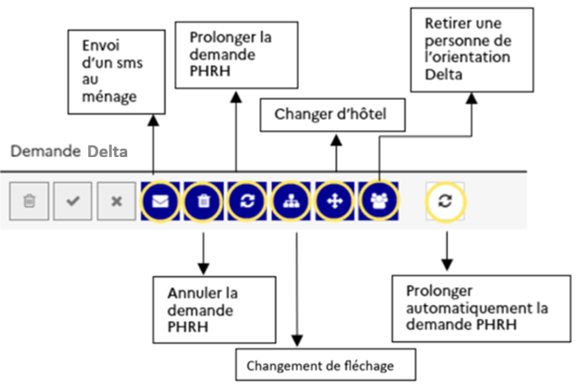 Voici un guide récapitulant l'ensemble des boutons d'actions possible sur une demande Delta :