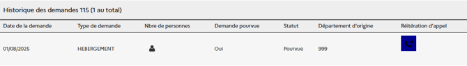 - Les demandes de prestations ou d'hébergement d'urgence ne peuvent être initiées uniquement si l'appel est en cours.