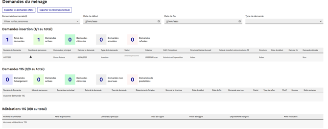 Les demandes des autres structures premier accueil ou autres départements n'apparaitront pas dans les résultats.